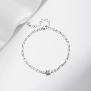 925 Sterling Silver Paperclip Chain Bracelet with Moissanite Stone