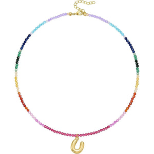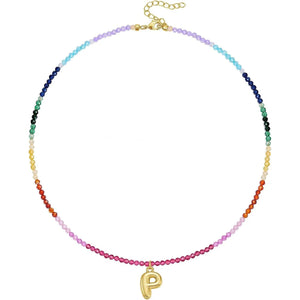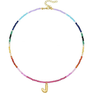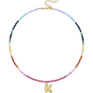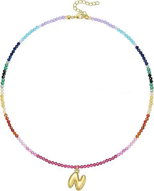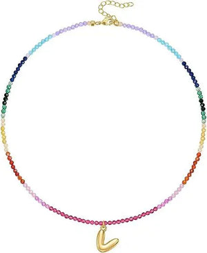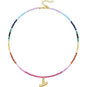 Beaded Bubble Initial Necklace Rainbow Bohemian