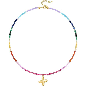 Bright, playful, and full of personality — this Beaded Bubble Initial Necklace Rainbow Bohemian combines a vibrant rainbow beaded chain with a shiny gold bubble initial pendant. The colorful beads add a cheerful pop to any outfit, while the golden initial gives it a touch of elegance. Whether worn alone or layered, this Bohemian beaded necklace is a joyful way to make your style truly personal.