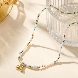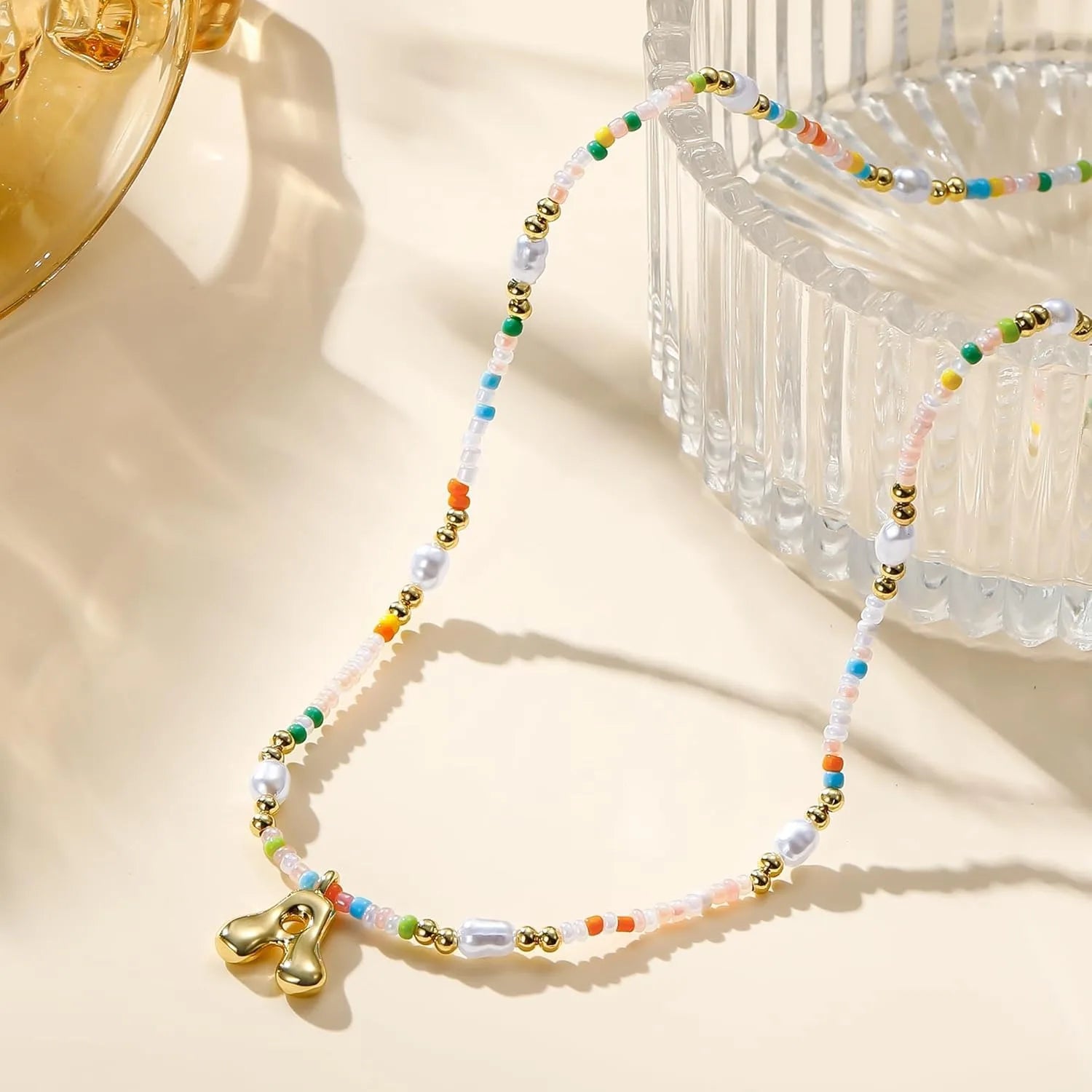 Beaded Initial Necklace Bubble Letter