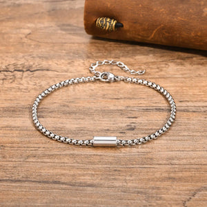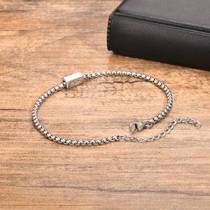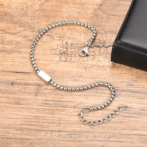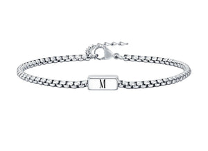 A bold and personalized accessory, the Initial Box Chain Bracelet in Silver combines modern style with a personal touch. Featuring a trendy square box chain design, this bracelet offers a unique way to showcase your initial with 26 letter options, making it the perfect accessory for any occasion.