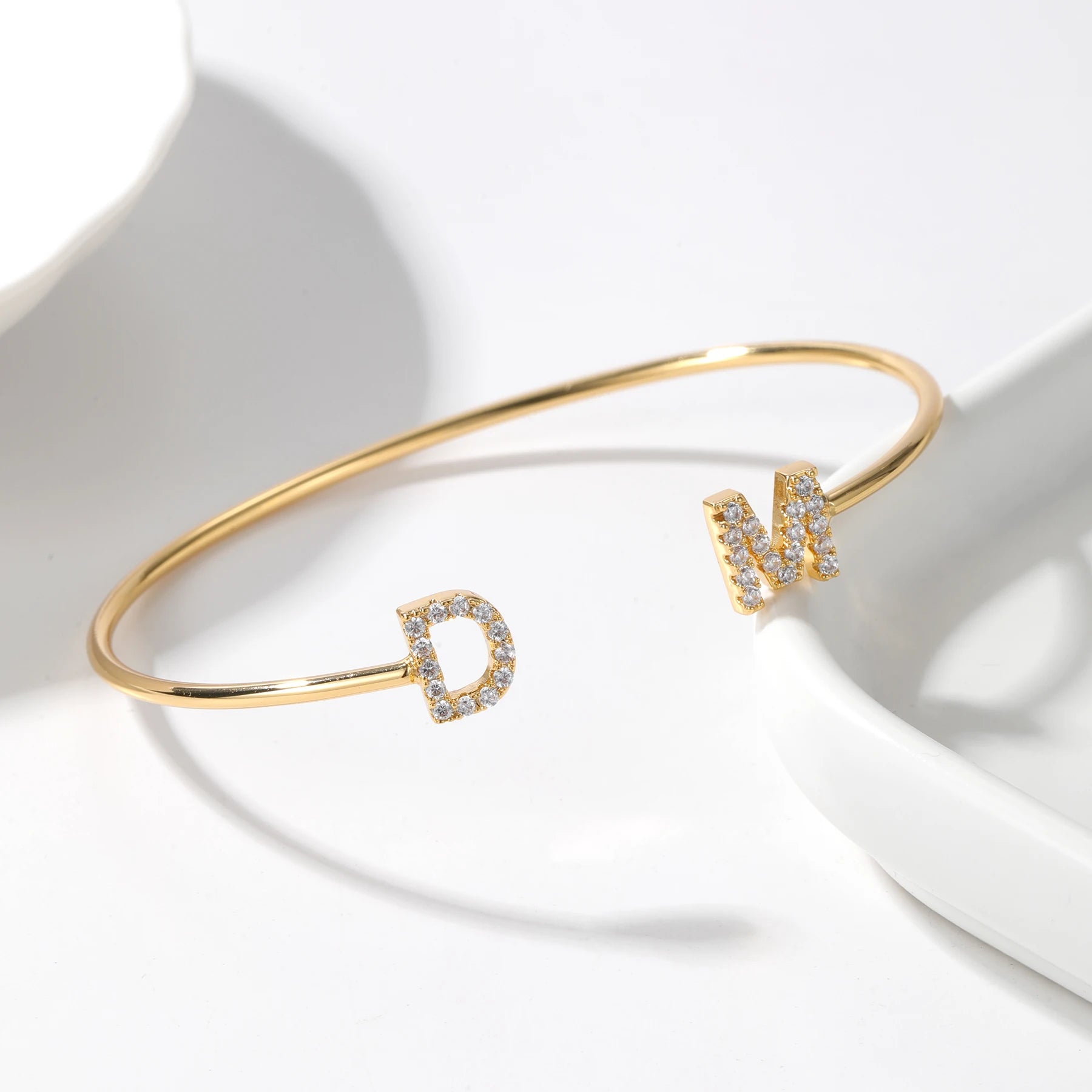 Dainty Double Initial Rose Gold Cuff Bracelet