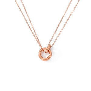 Soft, romantic, and minimal – the Dual Chain Ring Necklace in rose gold is the perfect modern classic. With two fine chains and a pair of interlocking circle pendants, this piece symbolizes unity and effortless style. Made from rose gold-tone stainless steel, it’s waterproof, hypoallergenic, and ready to layer or wear solo.