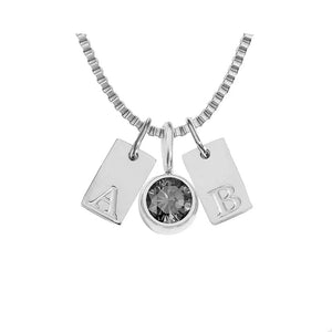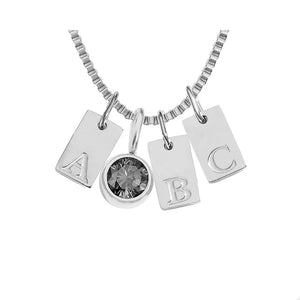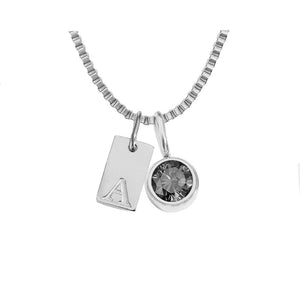Engraved Silver Charm Necklace with Initial and Birthstone