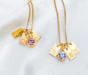• Custom initial and gemstone charm