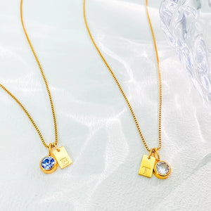 Personalize your look with the Engraved Silver Charm Necklace with Initial and Birthstone. This Necklace blends Initial Jewelry charm and Birthstone Jewelry sparkle with a Silver finish. Crafted from 14K gold-plated stainless steel on a 42 + 5 cm adjustable box chain, it’s perfect for solo wear or layering.