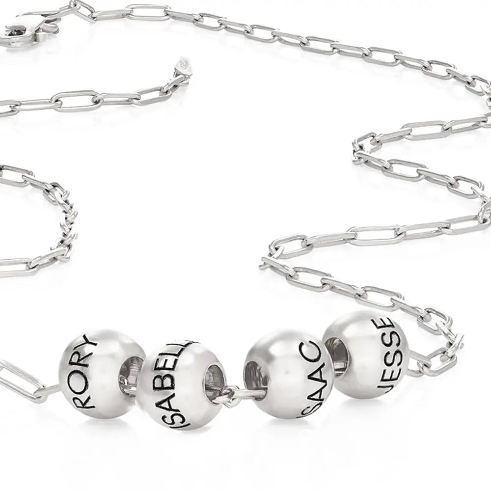 Gold Paperclip Family Necklace with Name Beads