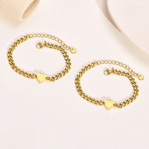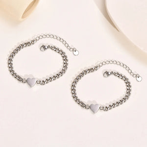The Heart Chain Couple Bracelet Silver features a polished heart charm on a sleek Silver Chain Bracelet, perfect for matching with someone special. Made from durable 316L stainless steel, it offers everyday shine and comfort. The adjustable 16–21 cm length and lobster clasp ensure a secure, custom fit. Wear this Silver Bracelet solo or share it as a stylish Couple Bracelet.