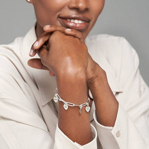 Personalize your Paperclip Charm Bracelet with up to six custom heart charms on this Rose Gold Bracelet with Engraved Charms. This Hearts Charms Paperclip Bracelet with rose gold finish is crafted from stainless steel with a waterproof finish for daily wear. Its modern paperclip chain balances bold style and comfort. Wear it solo or layer with other bracelets for a personalized look.
