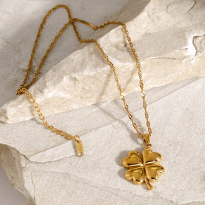 Lucky Clover Heart Pendant Necklace 18K Gold