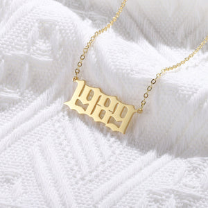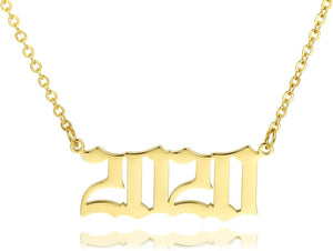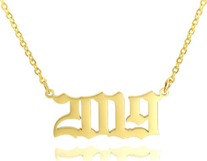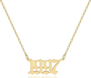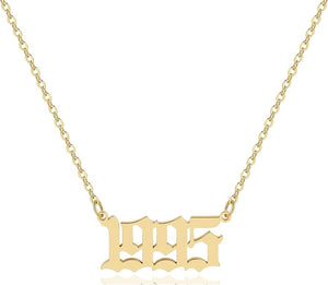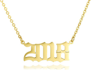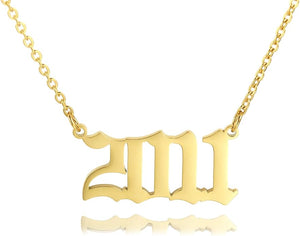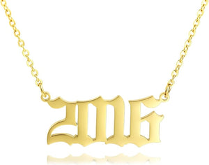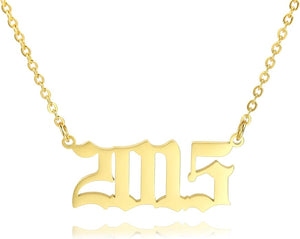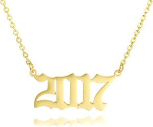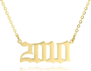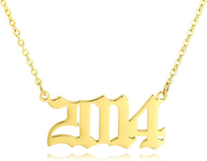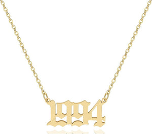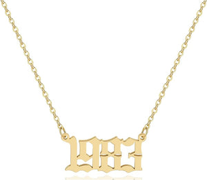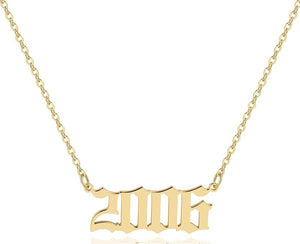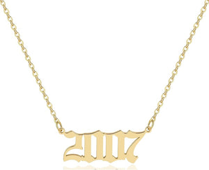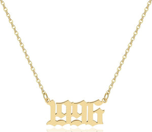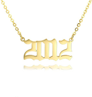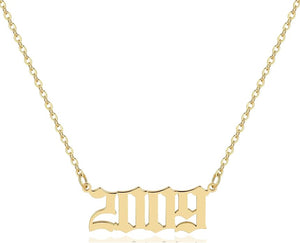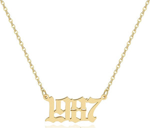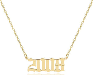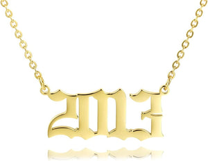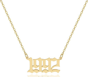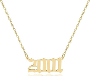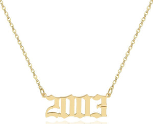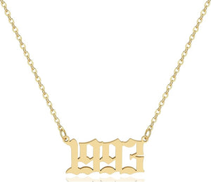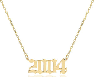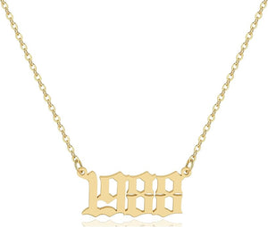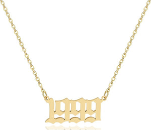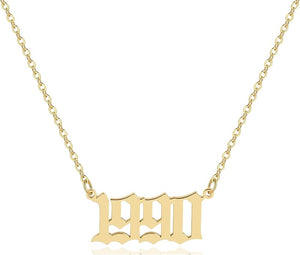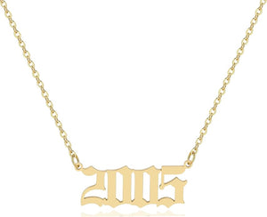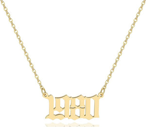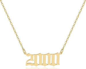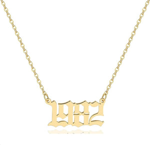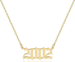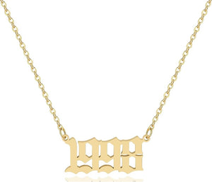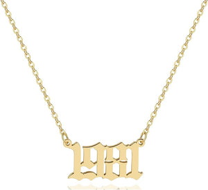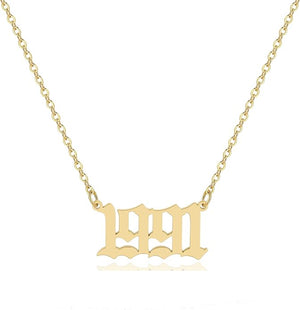 Celebrate your birth year with the Old English Year Necklace, featuring a bold pendant in a classic Old English font. Attached to a sleek link chain, this necklace adds a personal touch to any outfit. Available in gold and silver finishes, it makes a thoughtful gift for birthdays, anniversaries, or special milestones. Designed for everyday wear, it offers durability and a comfortable fit.