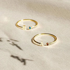 Silver Birthstone Ring with Initial