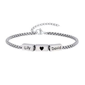 You can personalize this bracelet with up to 8 characters per line, making it perfect for initials, names, or short messages. If you’d like to add an emoticon, simply use the corresponding code — for example, enter KT-165 to engrave a heart symbol. This way, your bracelet will be crafted exactly to your unique design.