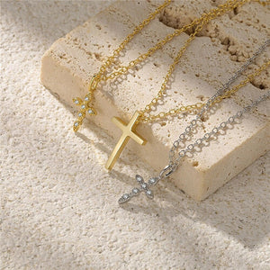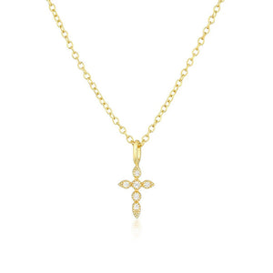 Delicate, timeless, and full of meaning — this Tiny Sparkling Cross Pendant Necklace Gold is a beautiful way to express your style and faith. The fine link chain holds a dainty gold cross pendant adorned with shimmering cubic zirconia, giving it a subtle yet eye-catching sparkle. Perfect for everyday wear or as a thoughtful gift, this gold cross necklace adds a touch of elegance to any look.